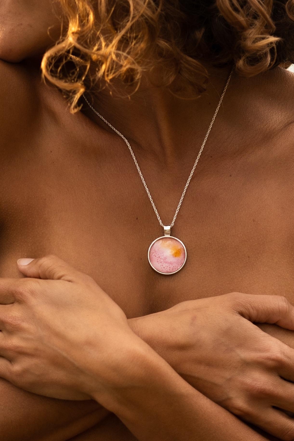Les aquarelles, minutieusement peintes à la main, sont capturées dans un écrin de lumière pour donner vie à des médaillons et boucles d’oreilles empreints de délicatesse.