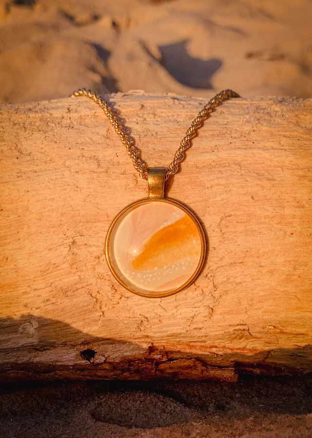Peinture aquarelle et acrylique sur papier d'art hahnemühle 265g/m2 encapsulé dans un support médaillon en alliage de métaux, cabochon en verre transparent haute qualité