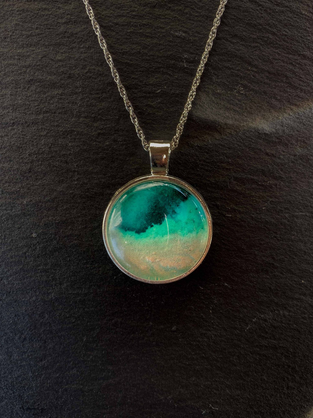 Peinture aquarelle et acrylique sur papier d'art hahnemühle 265g/m2 encapsulé dans un support médaillon en alliage de métaux, cabochon en verre transparent haute qualité