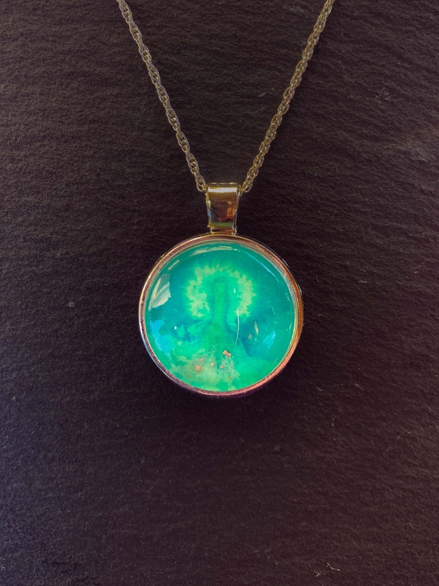 Peinture aquarelle et acrylique sur papier d'art hahnemühle 265g/m2 encapsulé dans un support médaillon en alliage de métaux, cabochon en verre transparent haute qualité