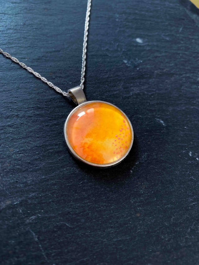 Peinture aquarelle et acrylique sur papier d'art hahnemühle 265g/m2 encapsulé dans un support médaillon en alliage de métaux, cabochon en verre transparent haute qualité