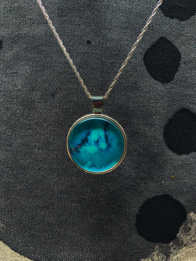 Peinture aquarelle et acrylique sur papier d'art hahnemühle 265g/m2 encapsulé dans un support médaillon en alliage de métaux, cabochon en verre transparent haute qualité