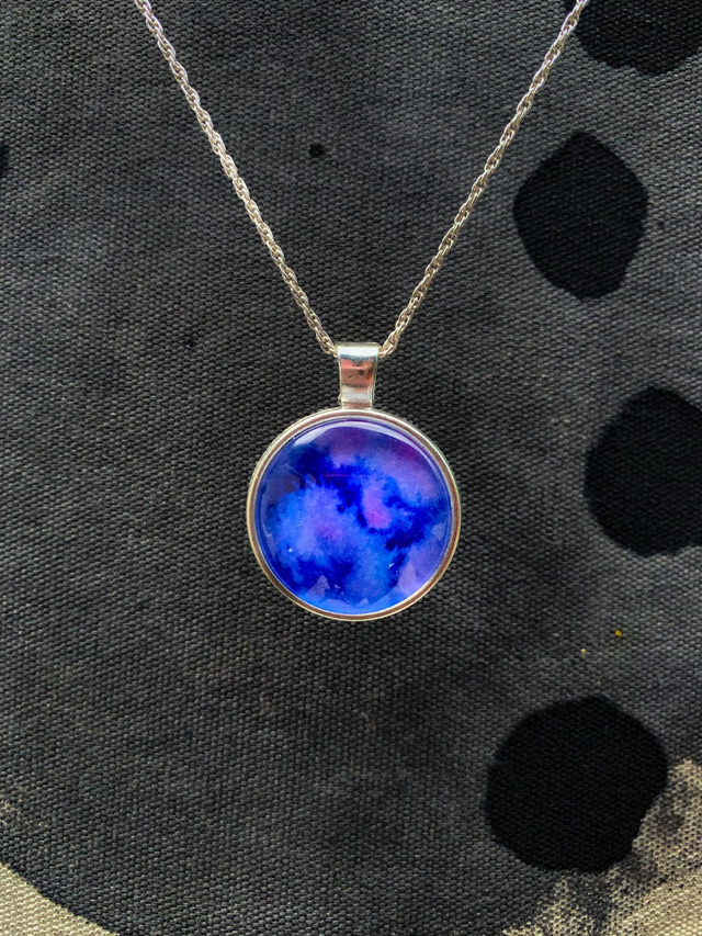 Peinture aquarelle et acrylique sur papier d'art hahnemühle 265g/m2 encapsulé dans un support médaillon en alliage de métaux, cabochon en verre transparent haute qualité
