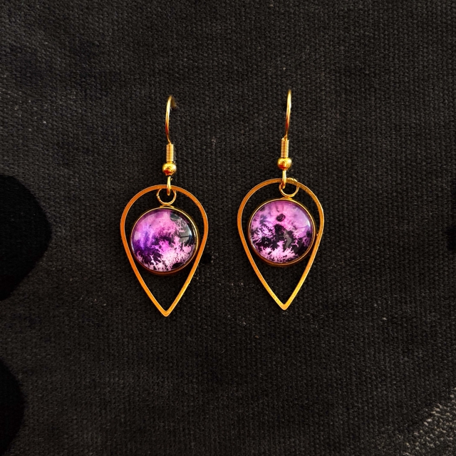 Peinture aquarelle et acrylique sur papier d'art hahnemühle 265g/m2 encapsulé dans un support médaillon en alliage de métaux, cabochon en verre transparent haute qualité