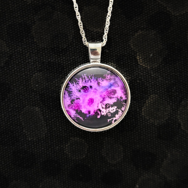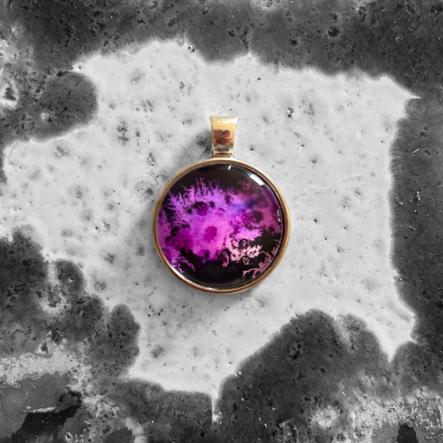 Peinture aquarelle et acrylique sur papier d'art hahnemühle 265g/m2 encapsulé dans un support médaillon en alliage de métaux, cabochon en verre transparent haute qualité